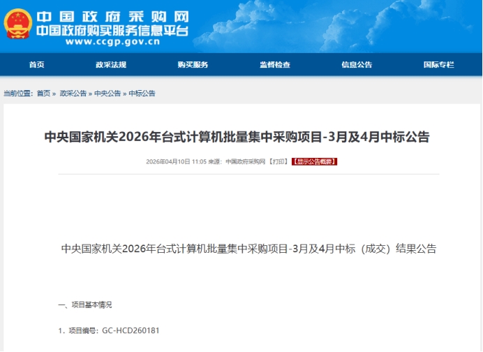 4月10日,中央國家機關(guān)公布了3月和4月的臺式機批量集采結(jié)果。本次采購總預(yù)算達到810萬元,五個配置包全部中標(biāo),無一流標(biāo)。今天我們就來拆解這份剛剛出爐的央采臺式機公告所隱藏的一些背后邏輯和趨勢!