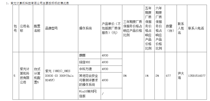 首先我們來看下中標(biāo)金額,此次紫光計算以333.76萬元位居第一,單價4930元,中標(biāo)數(shù)量達677臺,占據(jù)本次采購總量1620臺的41.8%,成為本輪央采的最大贏家。